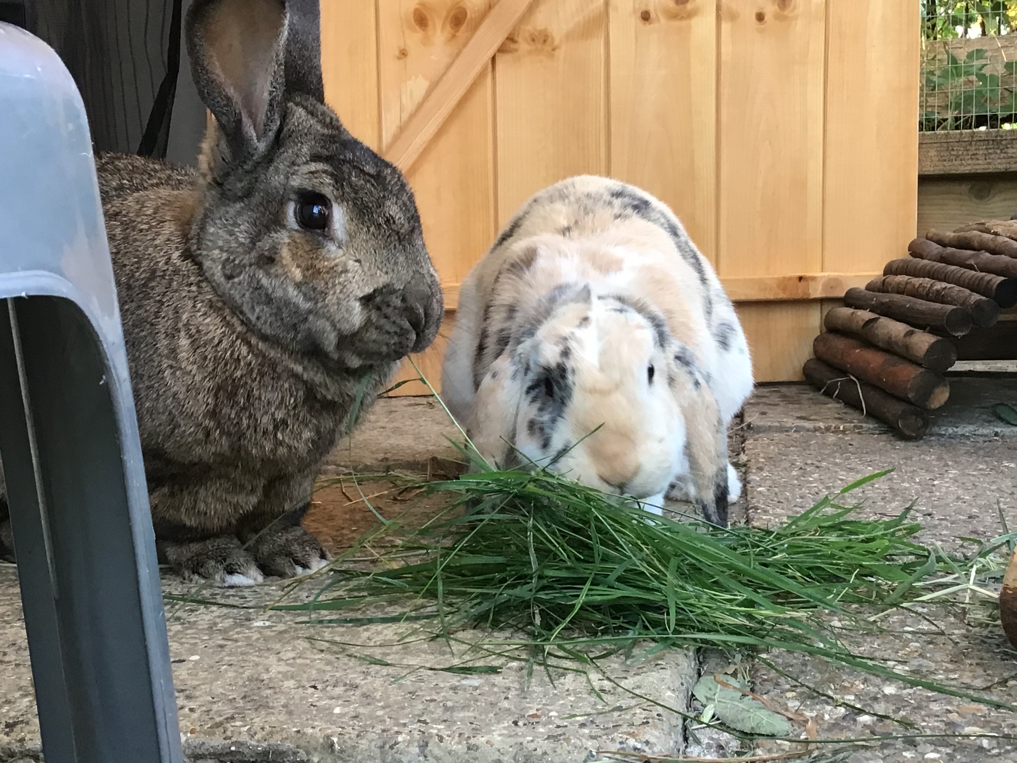 Rabbits staying with us are offered unlimited farm meadow hay and timothy hay which is purchased from Just4rabbits or Haybox. We provide fresh or dried forage daily along with small portions of vegetables and herbs. We also provide healthy treats including Fibafirst sticks, hay cookies and seasonal sticks including Apple, Hazel, Hawthorn and Birch (all grown in our garden). We ask that you provide your bunnies own dried food for their stay and if they are particular about their hay we would ask that you bring a supply of that too.
